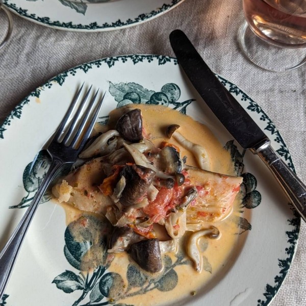 鶏もも肉のソテー 秋なすときのこのバルサミコマリネ添え
