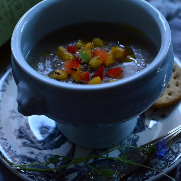 冷製マッシュルームスープ パプリカ乗せ
