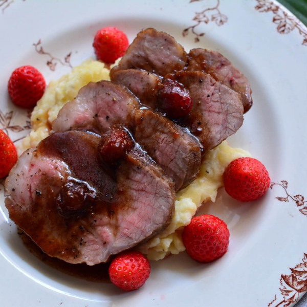 ローストポーク イチゴとワインビネガーのソース