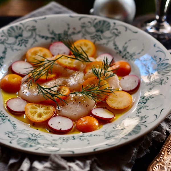 ホタテと金柑のカルパッチョ