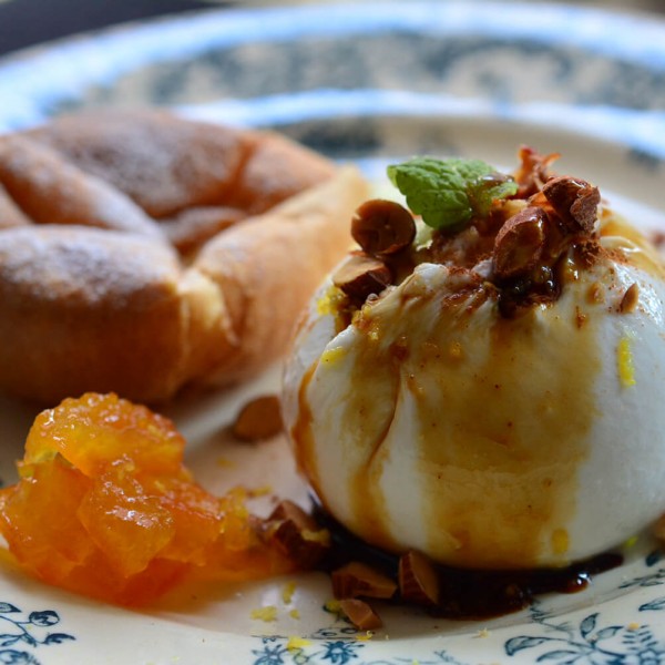 ブッラティーナ オレンジピールとアーモンドのシチリア風