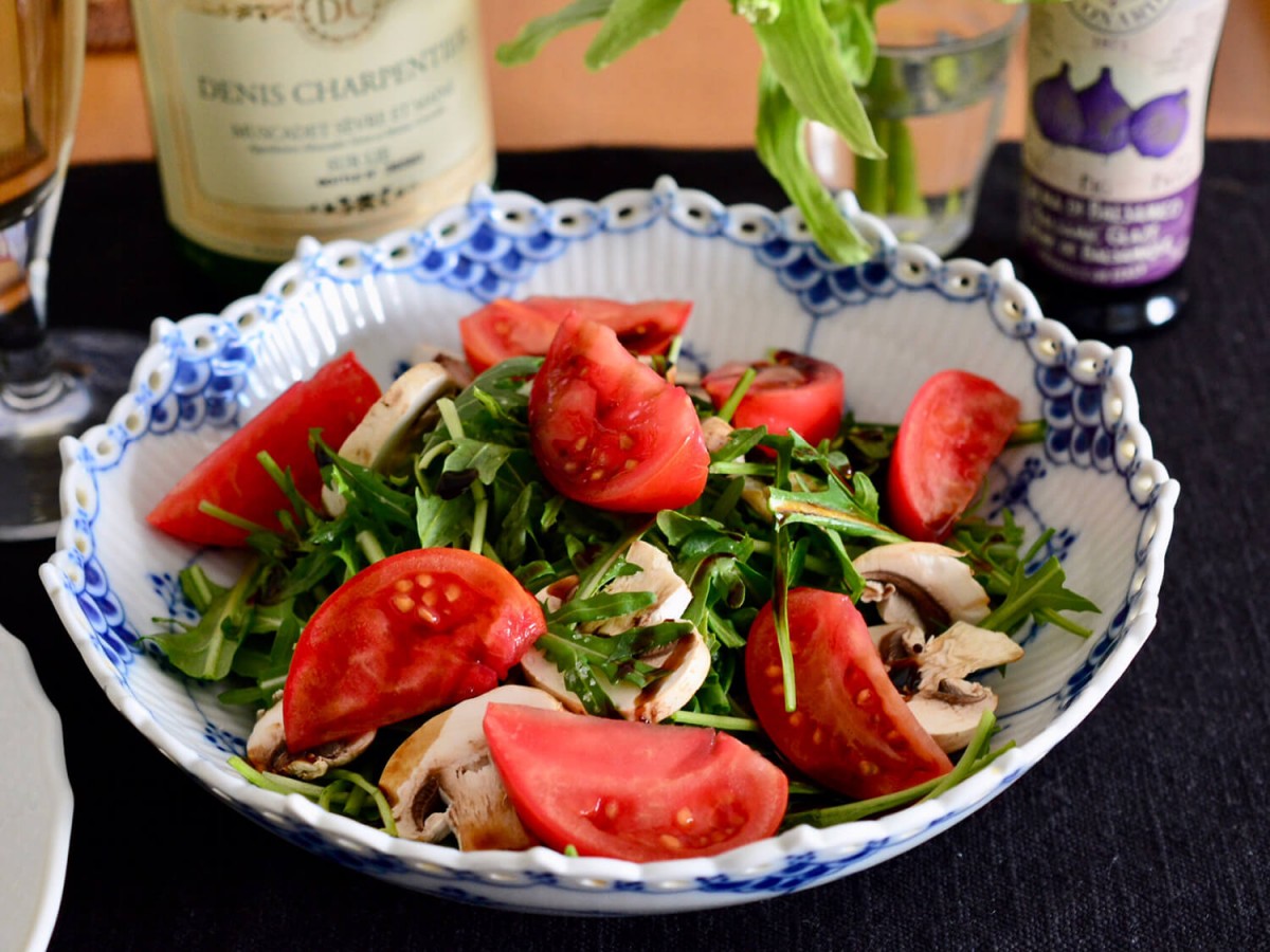 ルッコラとトマトのバルサミコ酢サラダ How to cook シンプルで色鮮やかなサラダです。ルッコラの辛味をバルサミコ酢の甘さで包みました。りんごやクルミ、削ったパルミジャーノなどを加えても合います。 <材料> ・ルッコラ(またはセルバチコ) 1袋 ・フルーツトマト 2個 ・ホワイトマッシュルーム 4個 ・ホワイトバルサミコ酢 大1 ・イチジクのバルサミコ酢 大1 ・レモンオイルコンディショナー 大1 ・塩 適量 ・黒こしょう 適量 ルッコラを3cmにカットし、水に放ち10分ほどおき、水気をよく切る。 トマトは一口大にカットし、ホワイトマッシュルームはスライスする。 ボウルに1、2を入れ、塩、ホワイトバルサミコ酢、オリーブオイルを入れてふわっとよく和え。 お皿に盛り、イチジクのバルサミコ酢をかけ、黒こしょうを挽く。 レシピ、写真/宇梶 由里子 1975年生まれ。大学卒業後、フランス家庭料理を学び、その後、旅行好きが高じてイタリア料理やタイ料理など様々な国の料理を身に付ける。フードアナリスト協会会員。2015年7月より母と共に自宅でイタリアン、フレンチの料理教室を開催している(現在会員制)。 Recommended Products Leonardi ホワイトバルサミコ 4年熟成 Leonardi いちじくのバルサミコ Crema di Balsamico al FICO Frantoi Cutrera シチリア産 海塩(細) 320g Maricha マリチャ 胡椒 ネロ ディ サラワク 90g Post Share Hatena Pocket RSS feedly Pin it RECIPE Antipasto, recipe, オリーブオイル, スパイス・塩・ハーブ・ポルチーニ, バルサミコ 鶏肉とカブのクリームパスタ 柚子胡椒風味 メカジキのピスタチオ香草パン粉焼き