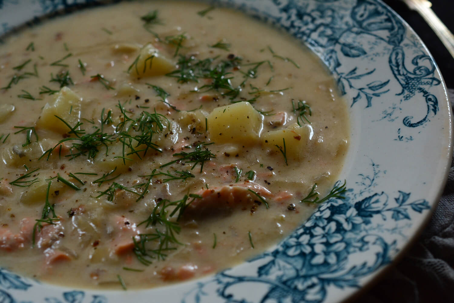 サーモンのチャウダースープ How to cook アサリの代わりにサーモンを加えたスープです。バターと小麦粉を加えたら手早く混ぜ、水分を加えたらダマが残らないように鍋底からよく混ぜてください。お好みのとろみ加減になるよう、水分量を調整してください。ディルを加えると爽やかな風味が広がります。 ・生鮭 1切れ ・玉ねぎ 1/2個 ・ジャガイモ(メークイン)2個 ・牛乳 200ml ・水 150ml ・バター 10g ・小麦粉 大1 ・顆粒コンソメの素 小1 ・塩・こしょう 適量 ・オリーブオイル 適量 ・ディル 適量 玉ねぎをみじん切りにし、ジャガイモは1cm角にカットする。鮭は皮を剥ぎ、2cm幅にカットする。 鍋にオリーブオイルを入れ、玉ねぎをしんなりするまでよく炒める。 ジャガイモを加えて全体を混ぜ、バター、小麦粉を加えて混ぜる。 水を加えて粉の塊がないように混ぜる。一煮立ちしたら顆粒コンソメの素を加え、牛乳も加えて10分ほどジャガイモが柔らかくなるまで煮る。(焦げ付かないように時々鍋底から混ぜる) 塩・こしょうで味を整えてお皿に盛り、ディルのみじん切りをたっぷりと乗せる。 レシピ、写真/宇梶 由里子 1975年生まれ。大学卒業後、フランス家庭料理を学び、その後、旅行好きが高じてイタリア料理やタイ料理など様々な国の料理を身に付ける。フードアナリスト協会会員。2015年7月より母と共に自宅でイタリアン、フレンチの料理教室を開催している(現在会員制)。 Recommended Products EXVオリーブオイル各種 Salina di cervia サーレ ディ チェルヴィア(中粗粒)1kg Maricha マリチャ 胡椒 ネロ ディ サラワク 90g Post Share Hatena Pocket RSS feedly Pin it RECIPE オリーブオイル, スパイス・塩・ハーブ・ポルチーニ, チーズ・バター 筍とアスパラのパスタ アスパラとセロリのサラダ